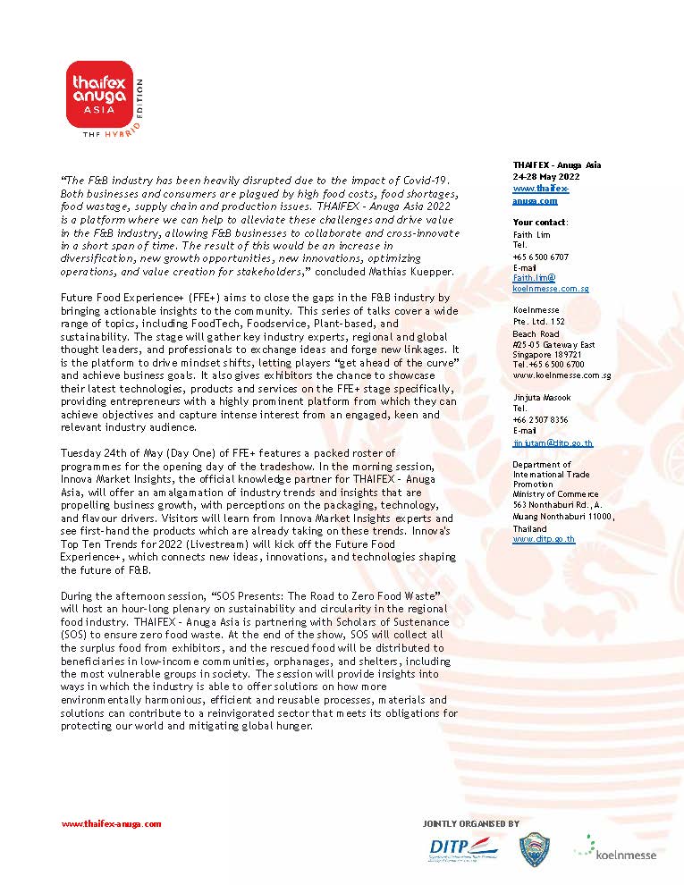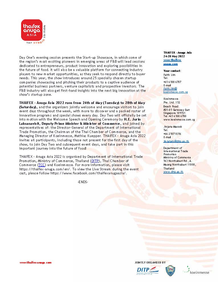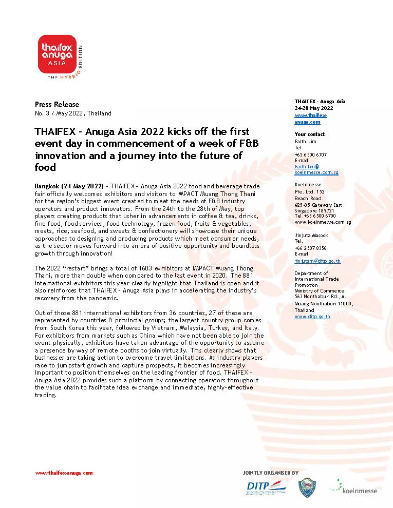 THAIFEX – Anuga Asia 2022 kicks off the first event day in commencement of a week of F&B innovation and a journey into the future of food